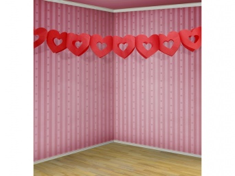 Papírová girlanda ve tvaru srdce v červené barvě.